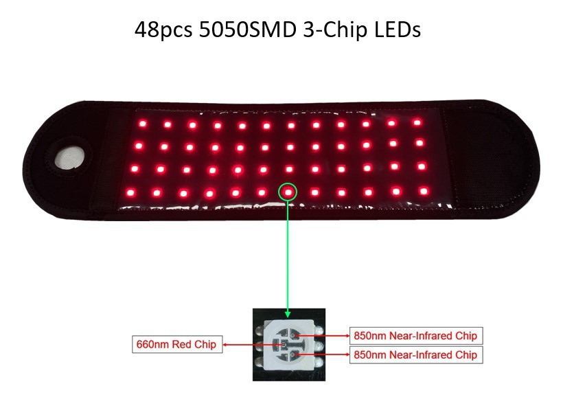 Red Light Therapy: Utilizes 660nm and 850nm wavelengths for targeted pain relief and muscle recovery.