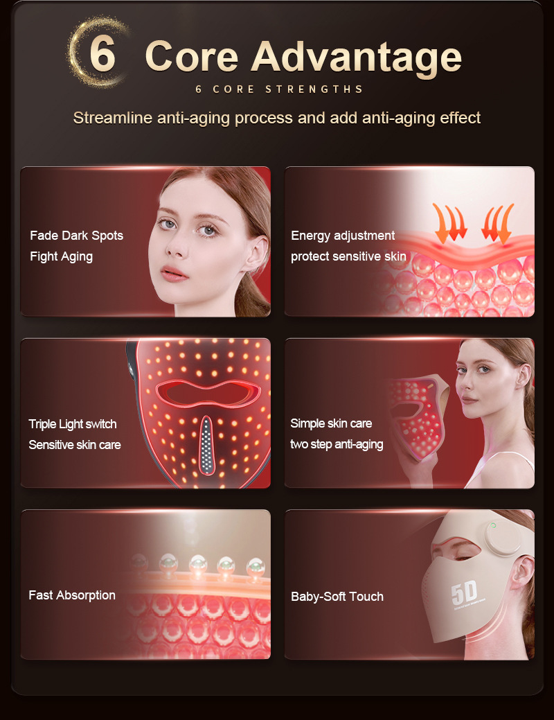 Multiple Wavelengths - 460nm, 665nm, 850nm, and 1064nm LEDs for various skin benefits
