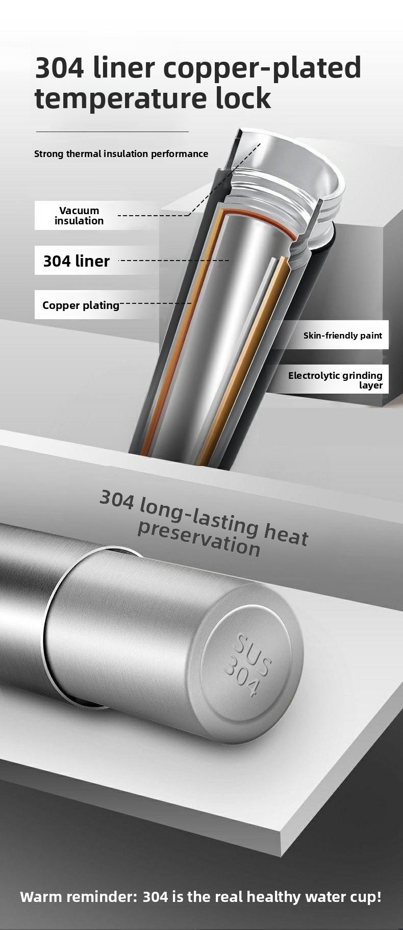 316 Stainless Steel - High-grade rust-resistant interior for safe drinking