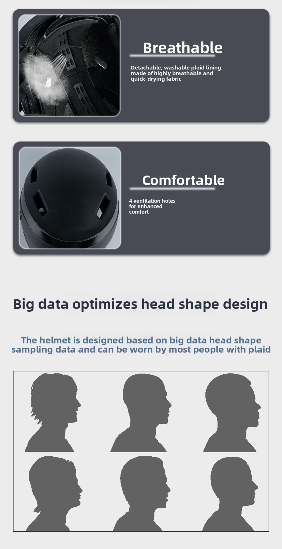Safety Protection - PC+EPS material construction for impact resistance and head safety
