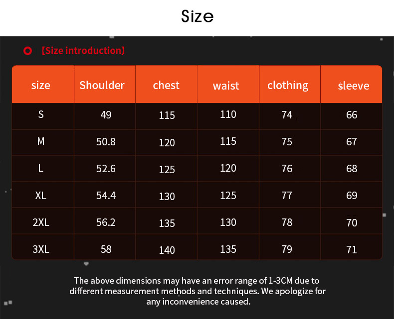 Sizes: S, M, L, XL, 2XL, 3XL.