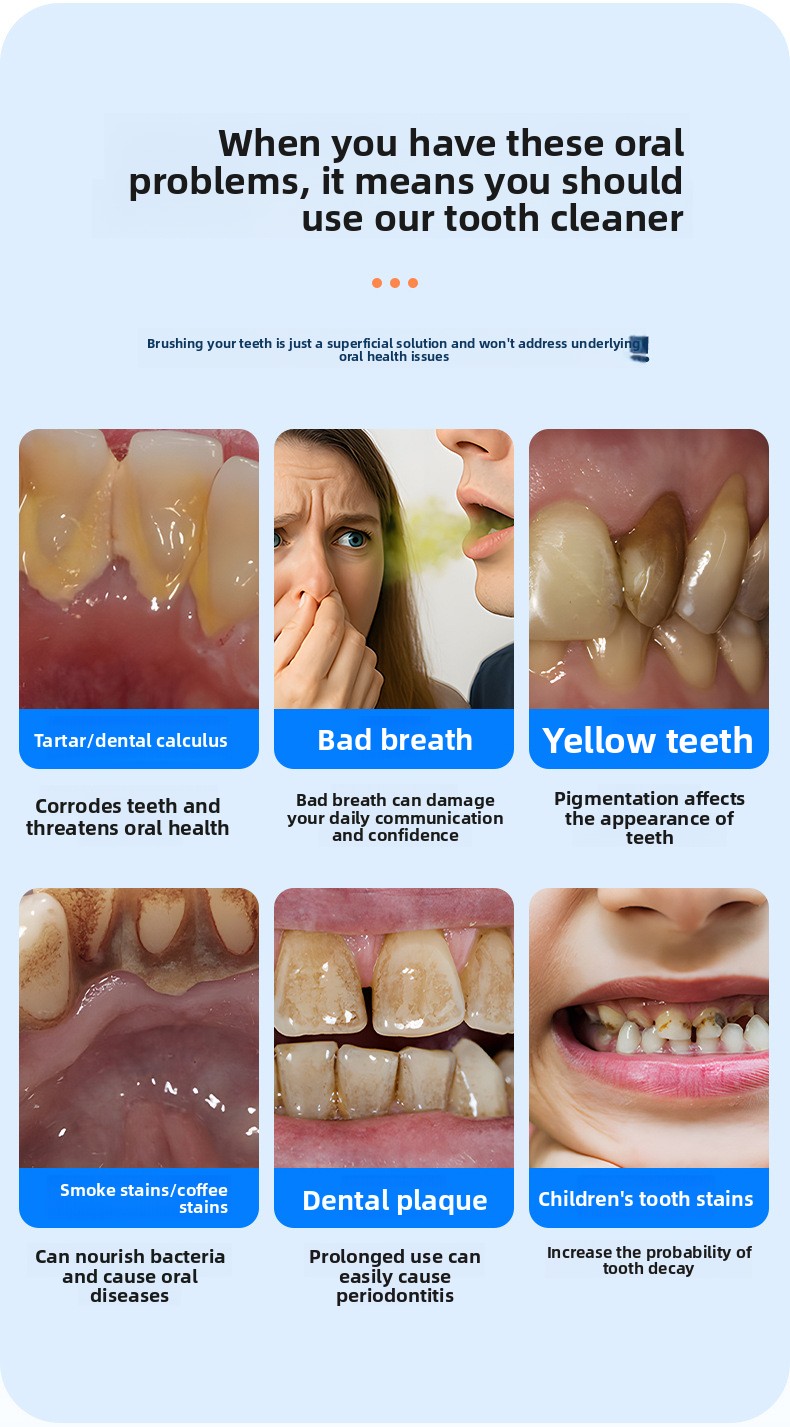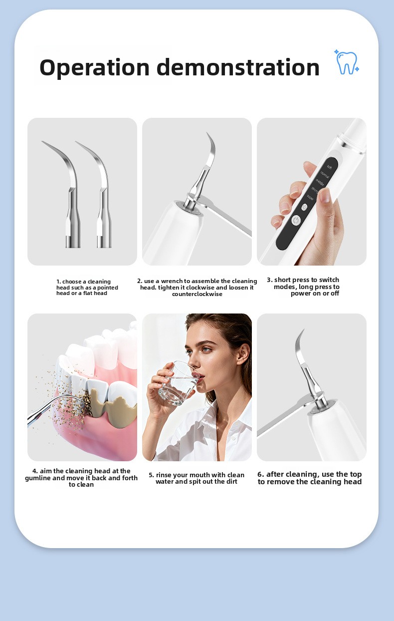 ✨ Multi-Function Oral Care – Designed for dental calculus removal and visible teeth whitening, helping improve overall oral hygiene and confidence.