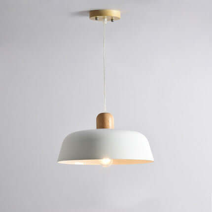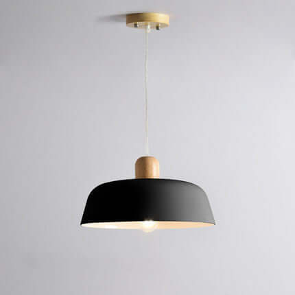 Nordic Wood Pendant Light with black shade, modern zinc alloy hanging lamp for home décor.