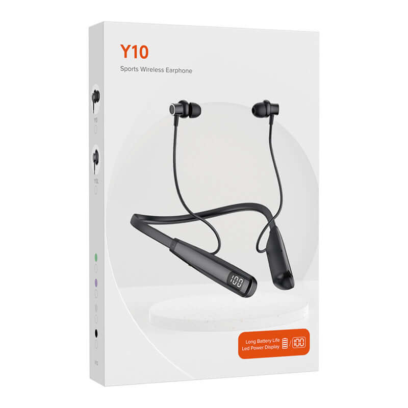 Wireless Bluetooth 5.4 Neckband Headset for Sports with long battery life and LED power display on packaging