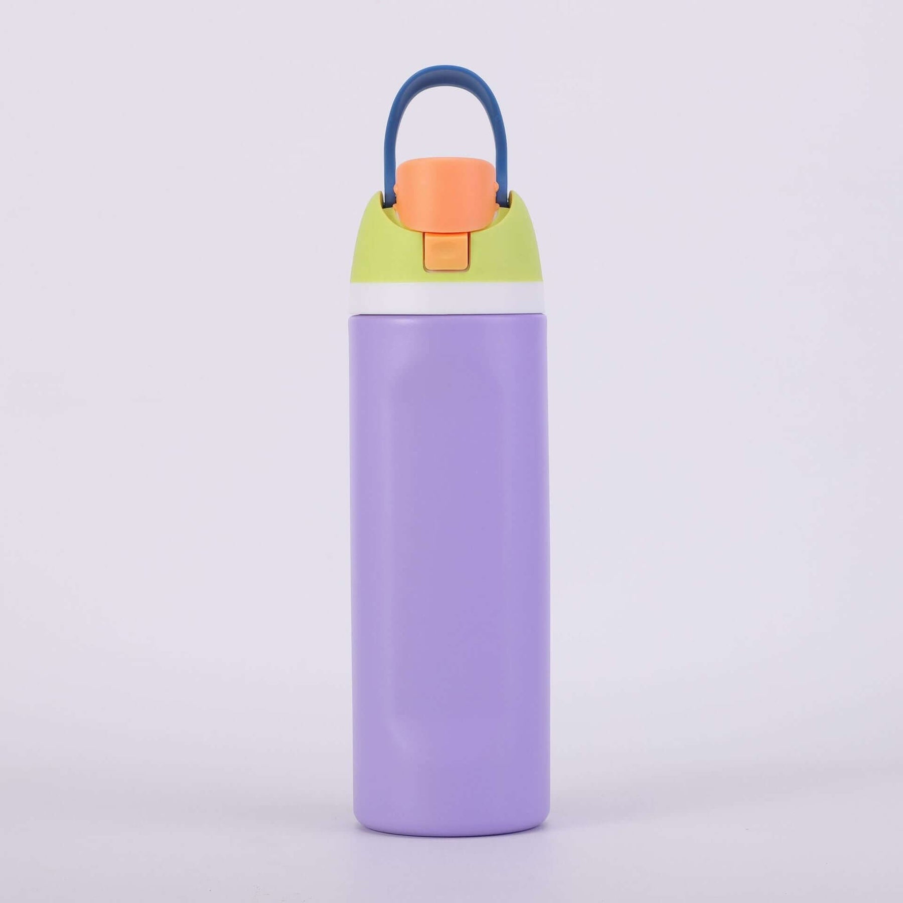 Insulated Stainless Steel Water Bottle with straw, featuring a colorful lid and durable design for hot and cold beverages.