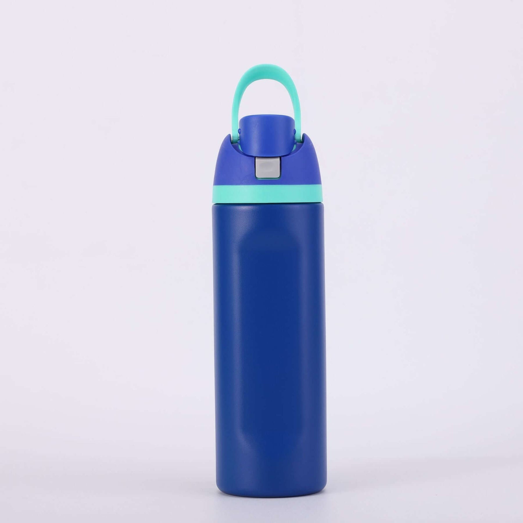 Insulated Stainless Steel Water Bottle with straw, 24oz capacity, blue color, BPA-free, eco-friendly packaging, vacuum insulation.