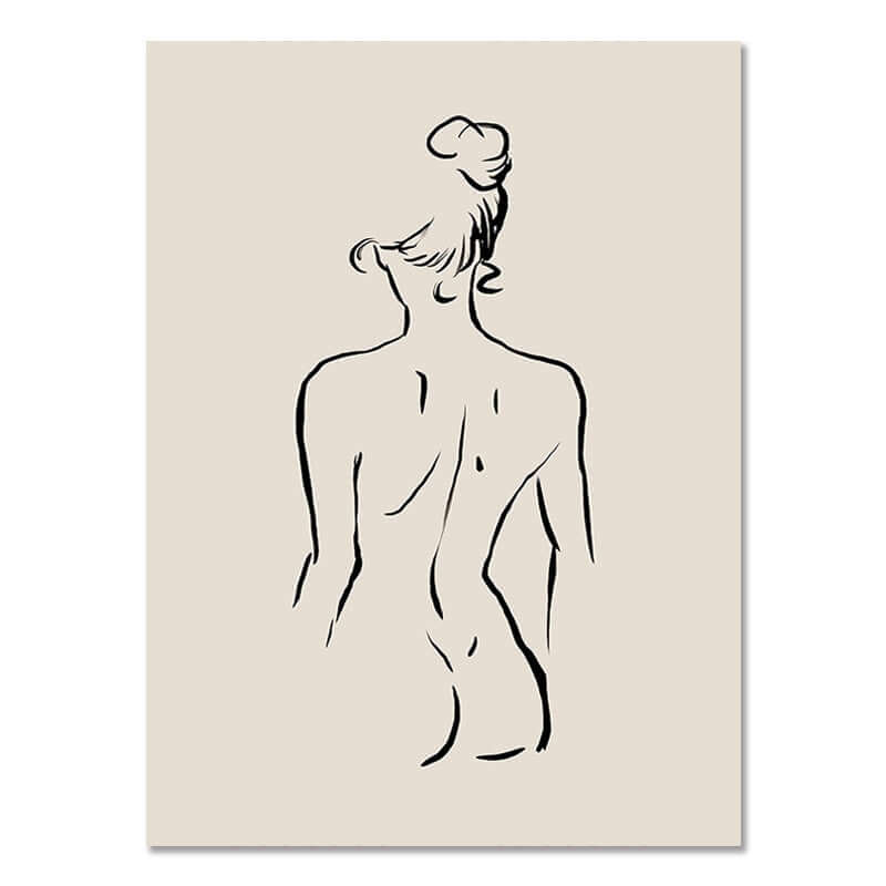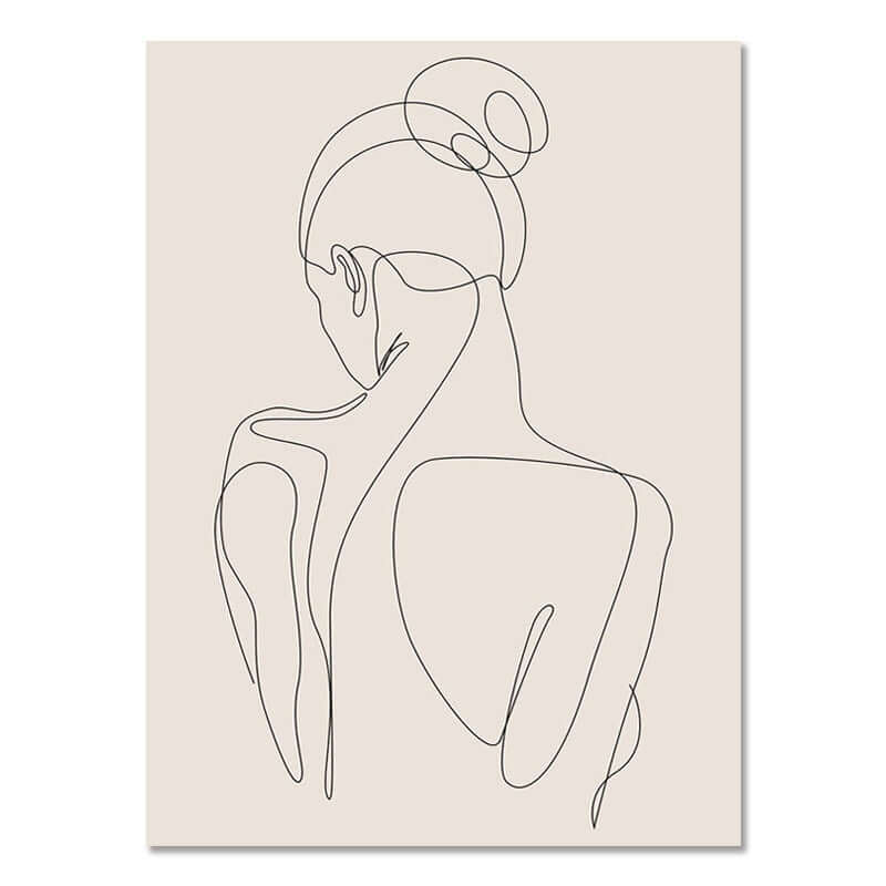 Line art woman in Bohemian Abstract Art Poster for modern airbrushed living room decor
