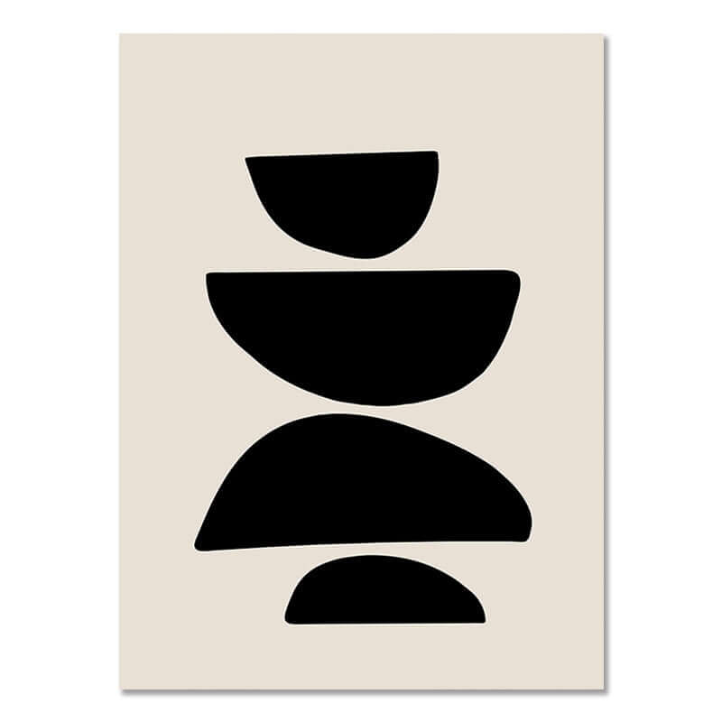 Bohemian Abstract Art Poster featuring modern black shapes on cream background, perfect for airbrushed living room decor.