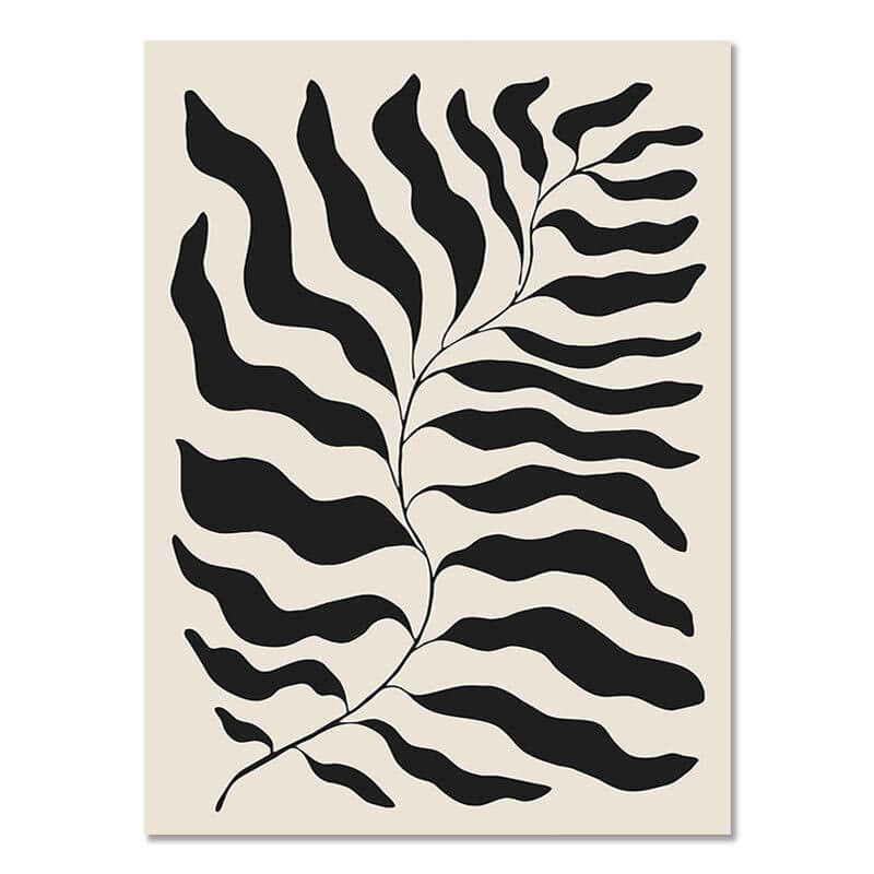 Bohemian Abstract Art Poster with black leaf design for modern living room decor