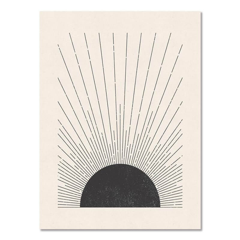 Bohemian Abstract Art Poster featuring a sunburst design, perfect for modern airbrushed living room decor.