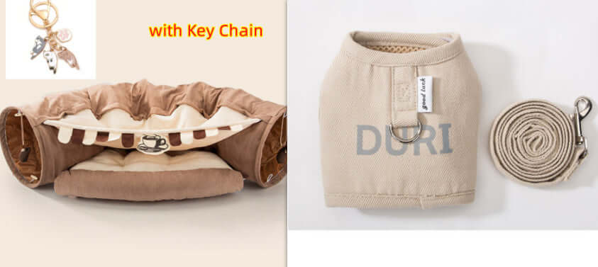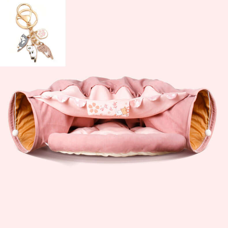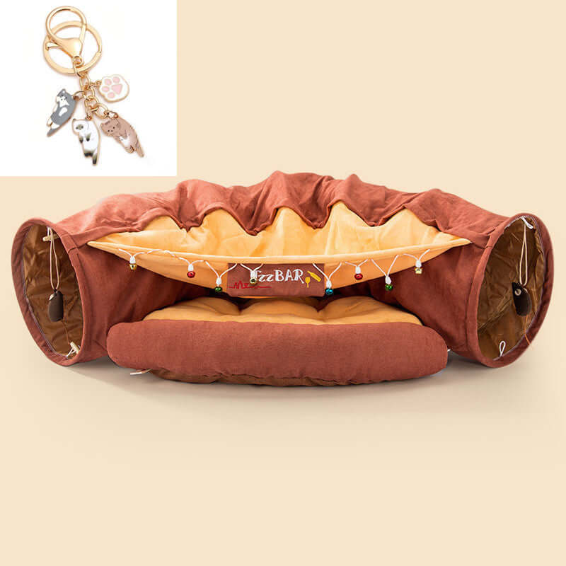 Collapsible Cat Tunnel with key chain - Durable, washable pet play tunnel providing safe, compact space for playful cats.