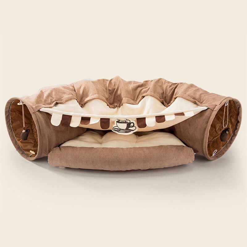 Collapsible Cat Tunnel in durable, washable cloth, showcasing compact design for easy storage, perfect play area for cats.