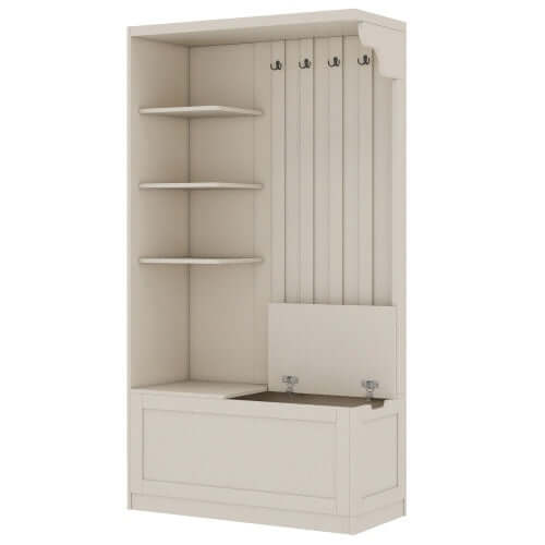 Nom du produit : Meuble d'entrée combiné gauche-droite multifonctionnel (peut être utilisé séparément) avec rangement et 4 crochets, meuble de rangement/portemanteau 2 en 1 pour salon, cuisine et couloir, beige antique