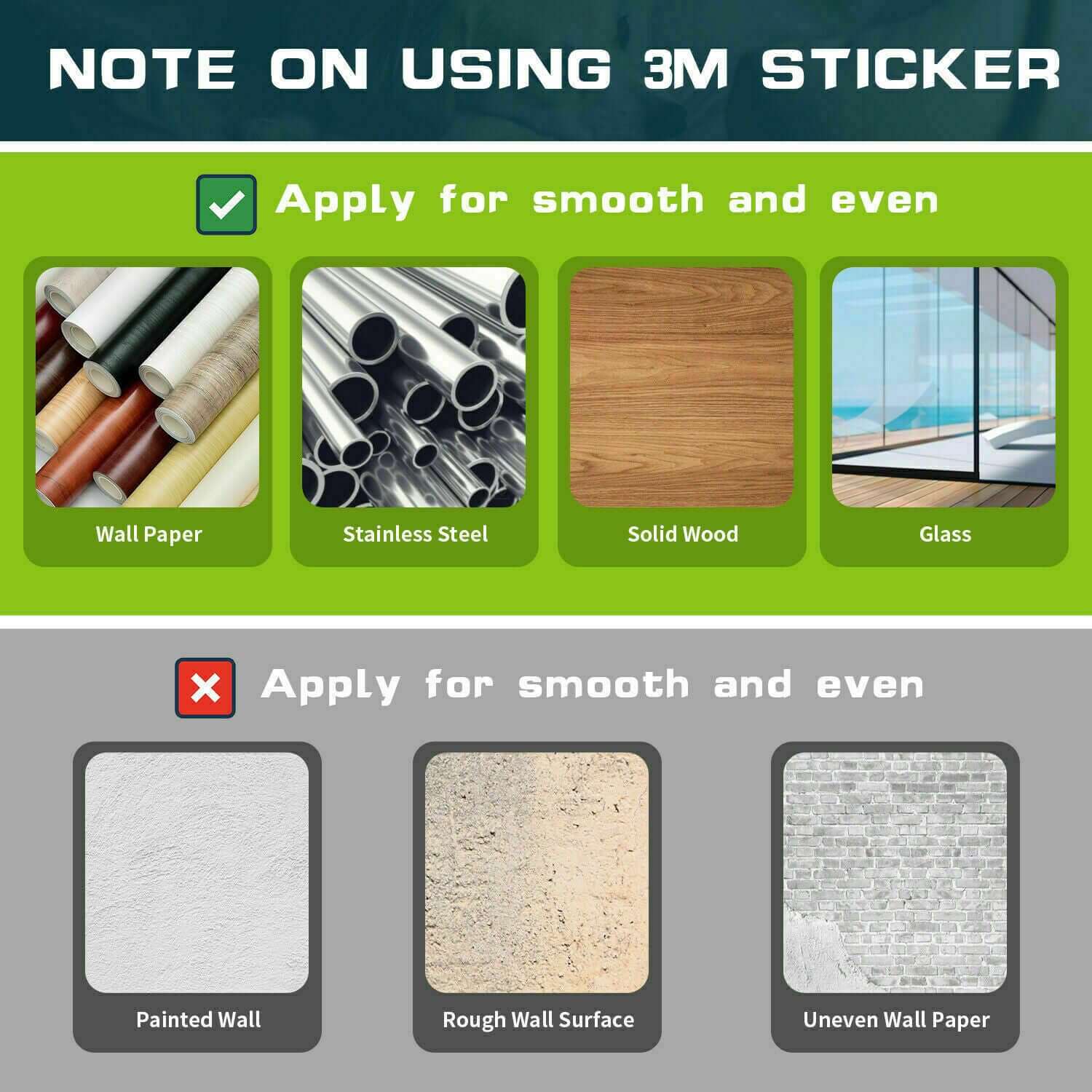 Pet Safety Gate Mesh Fence 3M sticker usage instructions for smooth surfaces like wallpaper, stainless steel, wood, and glass.