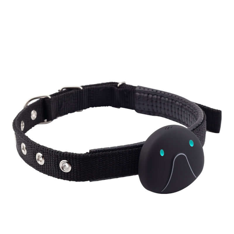 Smart Pet Tracker Collar in black and white, mini waterproof GPS locator for dogs and cats