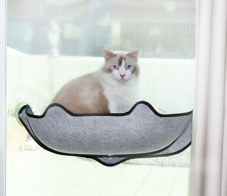 - This cat hammock bed can be securely mounted on flat glass windows, balconies, tiled walls, or smooth wooden doors — letting your cat bask in the sunlight or watch the outside world.